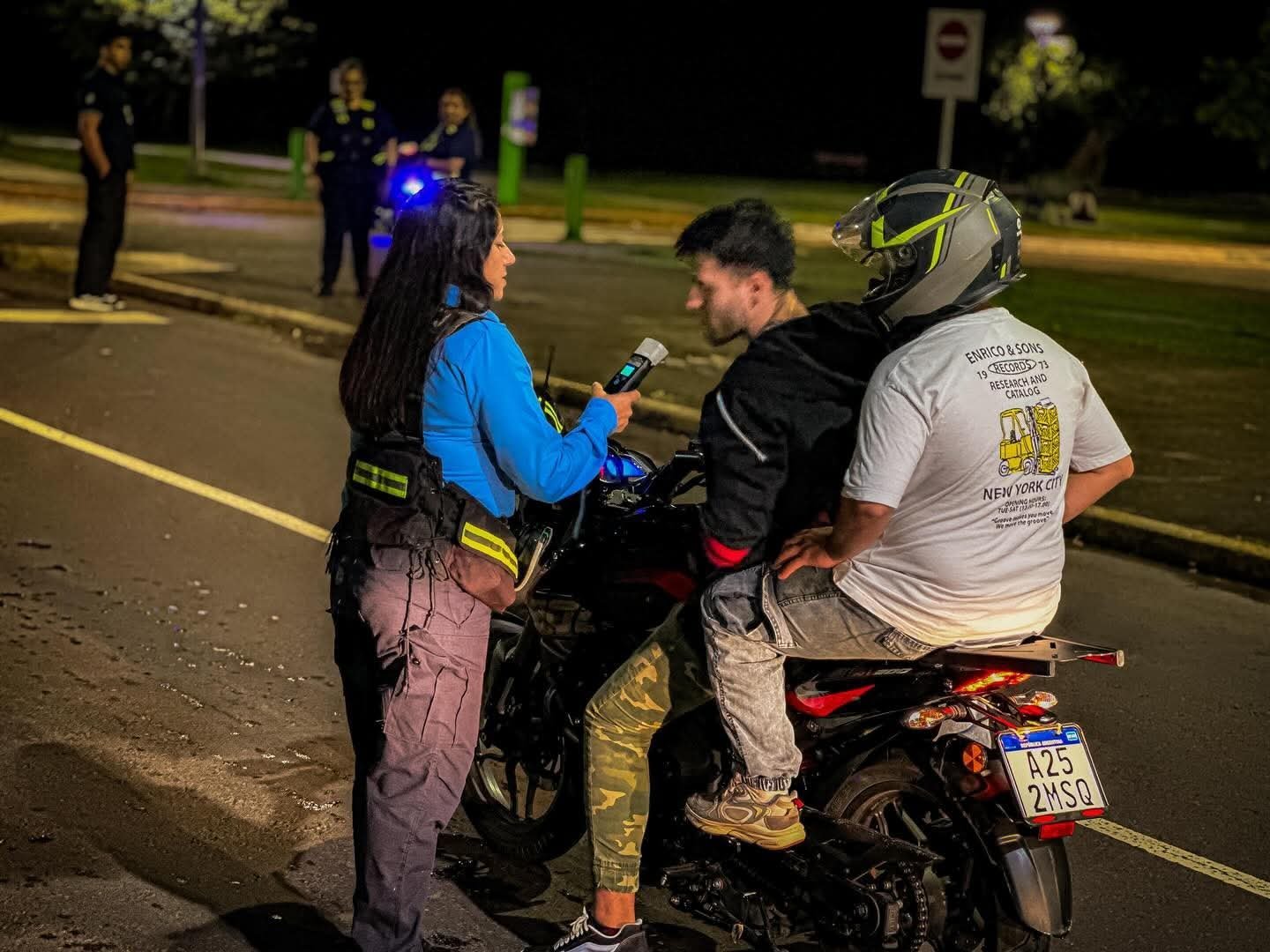 Parte de los controles se concentró sobre avenida Sarmiento, en la zona del Parque de la Democracia, donde se realizaron verificaciones tanto en horarios diurnos como nocturnos, con especial atención en el uso del cinturón de seguridad y del casco protector.