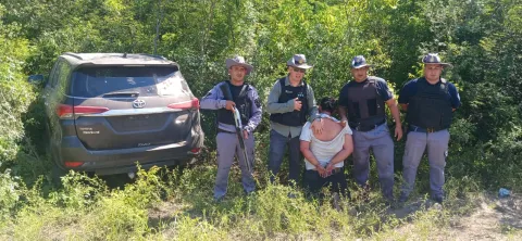 A unos 10 kilómetros, en el sector conocido como cruce Milobich, los efectivos lograron interceptar una camioneta Toyota, color gris oscuro, sin dominio colocado. Sus ocupantes abandonaron el vehículo tras impactar contra un cerco perimetral y huyeron a pie hacia una zona boscosa, siendo demorado uno de los masculinos, un joven de 22 años, oriundo de la provincia de Formosa.