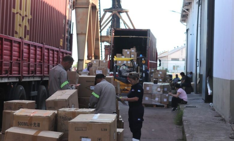 Las cargas incluyeron contenedores con artículos de bazar desde China para el Grupo Ni, ejecutadas por Gama Grupo Comercial. Las siguientes operaciones, a cargo de Deb Comex Despachantes Aduaneros, comprendieron pallets de cerámicos para piscinas procedentes de Brasil, minicargadoras desde Estados Unidos para la empresa Difamaq, y conos viales importados desde China.